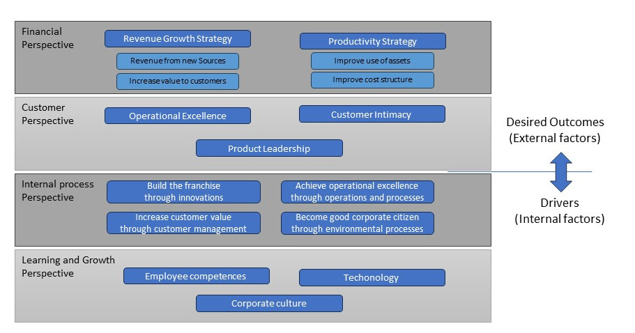 - Define strategic objectives of what is to be achieved in each of the four main perspectives seen above.